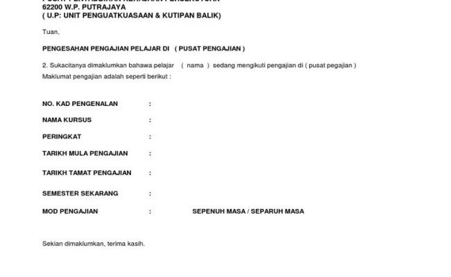 Contoh Surat Pengesahan Tamat Pengajian - Peraturan Akademik. Senarai semak pelantikan baharu / bersara / tamat perkhidmatan (tindakan jabatan) semua jabatan. Borang permohonan tuntutan elaun perjalanan kenderaan. Borang permohonan kebenaran menerima aset alih hadiah. Belia berumur 18 hingga 20 tahun dan pelajar yang melanjutkan pelajaran ke peringkat pengajian tinggi boleh menuntut bantuan kerajaan epemula dari 11 april hingga 1 jun. Kepentingan surat perjanjian sewa rumah. Bagi sesiapa ada akaun kwsp, boleh cuba alternative ni …